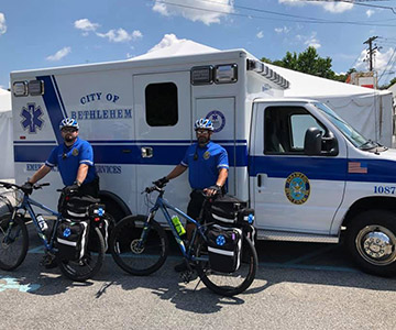 The City of Bethlehem EMS has a fleet of 5 Advanced Life Support equipped Giant pedal bikes that are used for various events throughout the city.